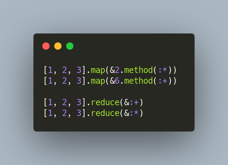 reduce([1, 2, 3], 1, &:*) # multiply all numbers